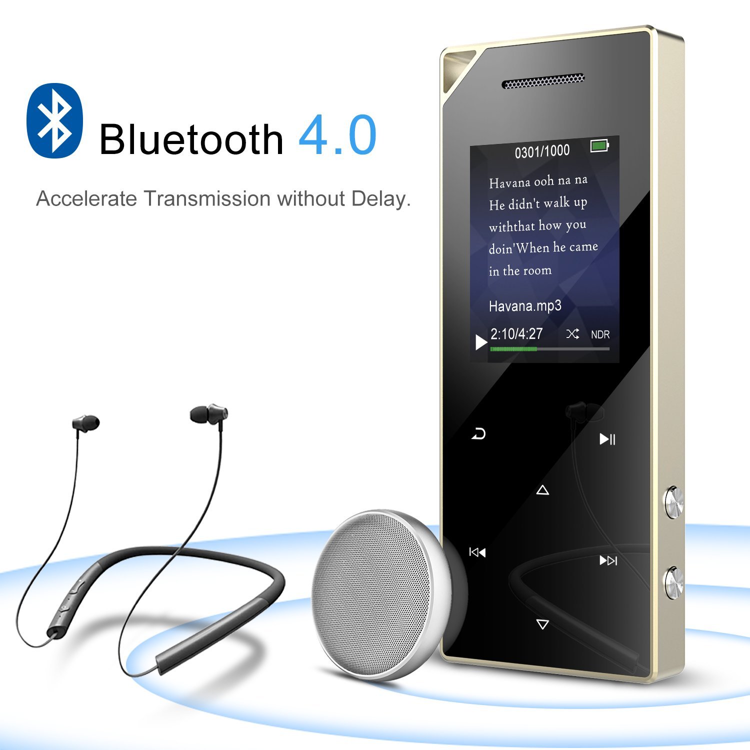- Bluetooth 4.0:Enjoy wireless music without delay. Support listening radio via Bluetooth, background music playback, music fast forward/backward, playing from playlist. Support connection to Bose SoundLink Color Bluetooth speaker II audio, JBL speaker/headphone and car audio.(PS: This player can only pair with Bluetooth speaker and Bluetooth headphone.)