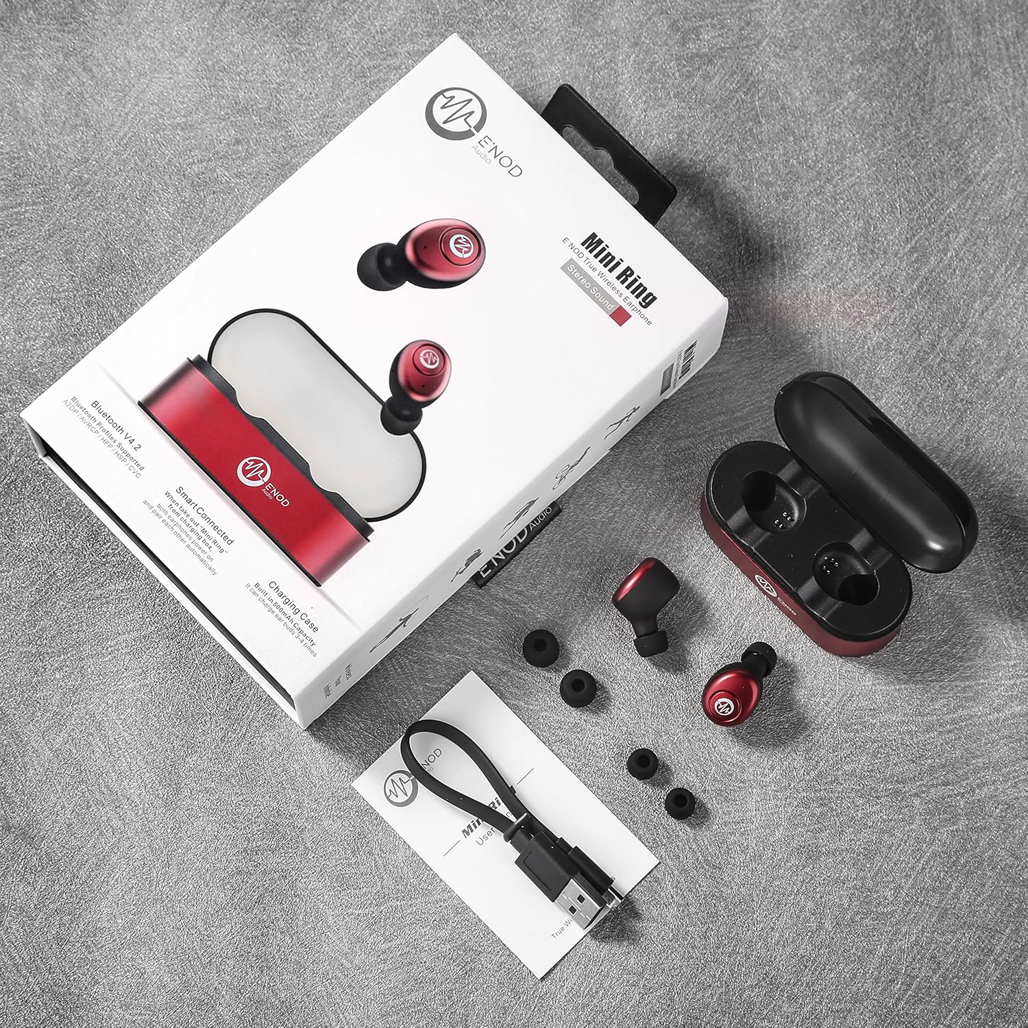 Bluetooth Wireless Earbuds, ENOD Mini Ring True Wireless Hi-Fi Stereo Bluetooth Headphones V4.2