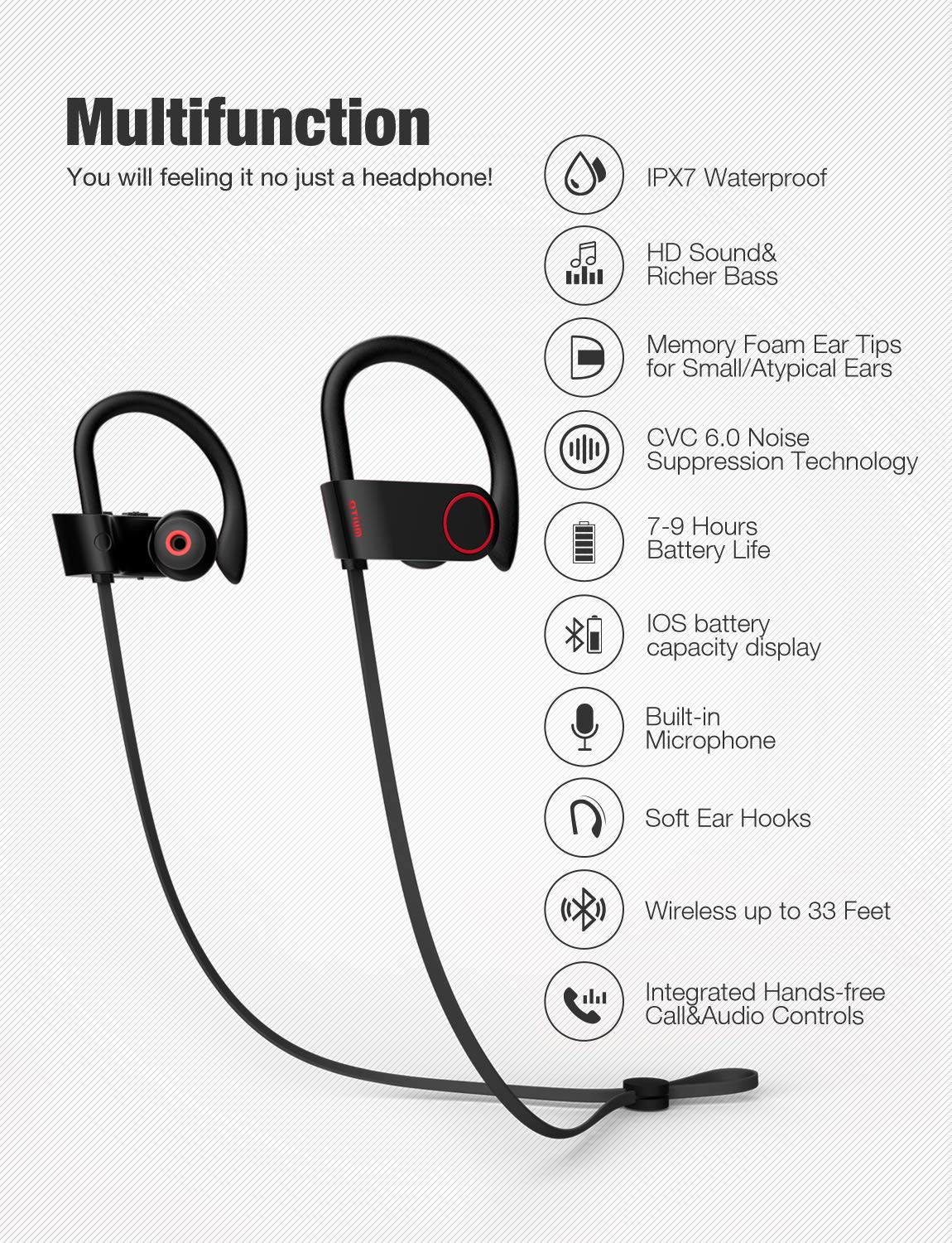 Otium Bluetooth Headphones, Best Wireless Sports Earphones