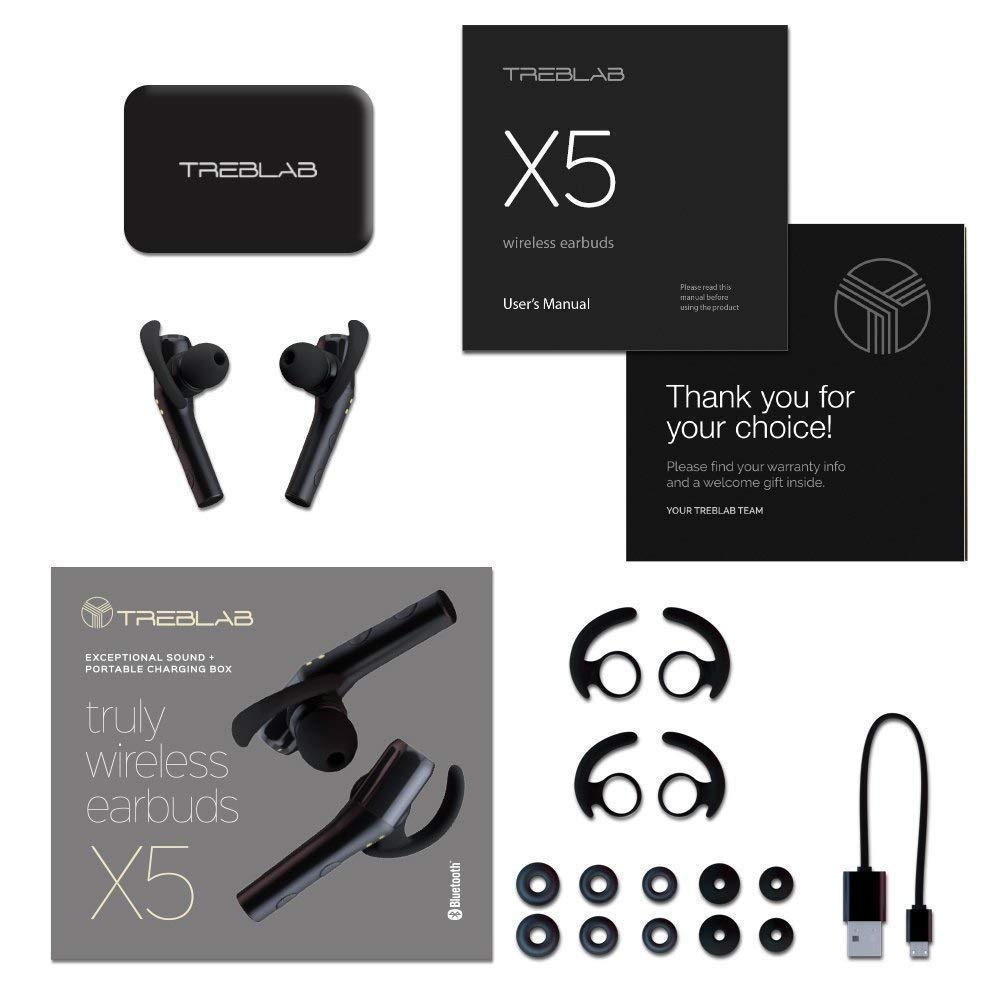 TREBLAB X5 - Advanced Bluetooth Headphones w/Beryllium Speakers, Truly Incredible 3D Sound, Best Sports & Running True Wireless Earbuds, Noise Cancelling