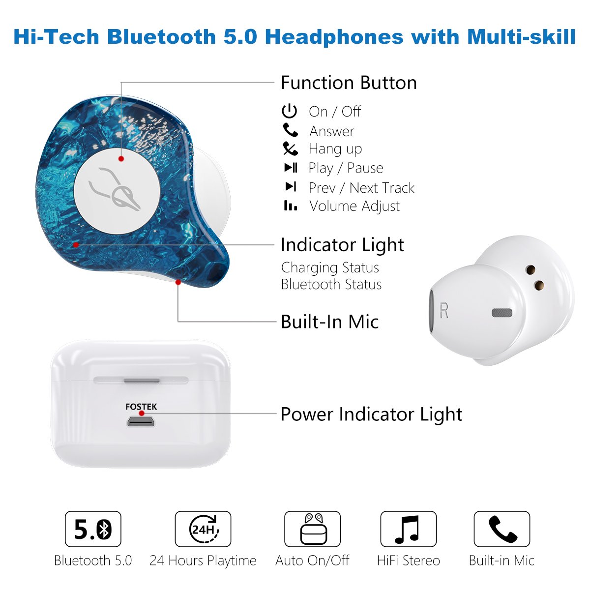 - HIGH TECH DESIGN: The Bluetooth 5.0 earbuds have a stable signal transmission and they can play for 6-8 hours with just one single charge. With the push of one button you can pause and play, control the volume, skip songs, activate SIRI and more!
