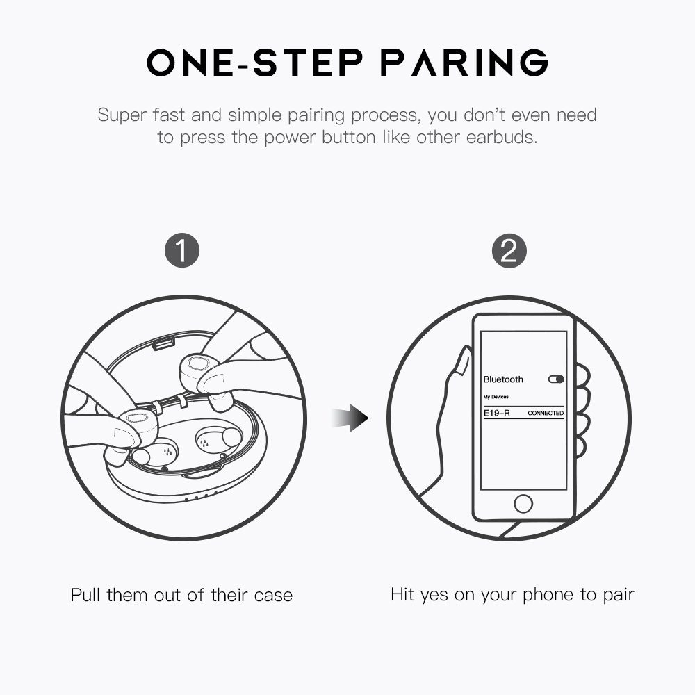 - ★【ONE-STEP PARING】You don’t need any skills to use earbuds. They are easy to connect as they are available for a connection whenever they are on unlike the traditional earbuds which you have to click the power button to have them ready for connection. In a matter of seconds, you are in your euphonic music world.