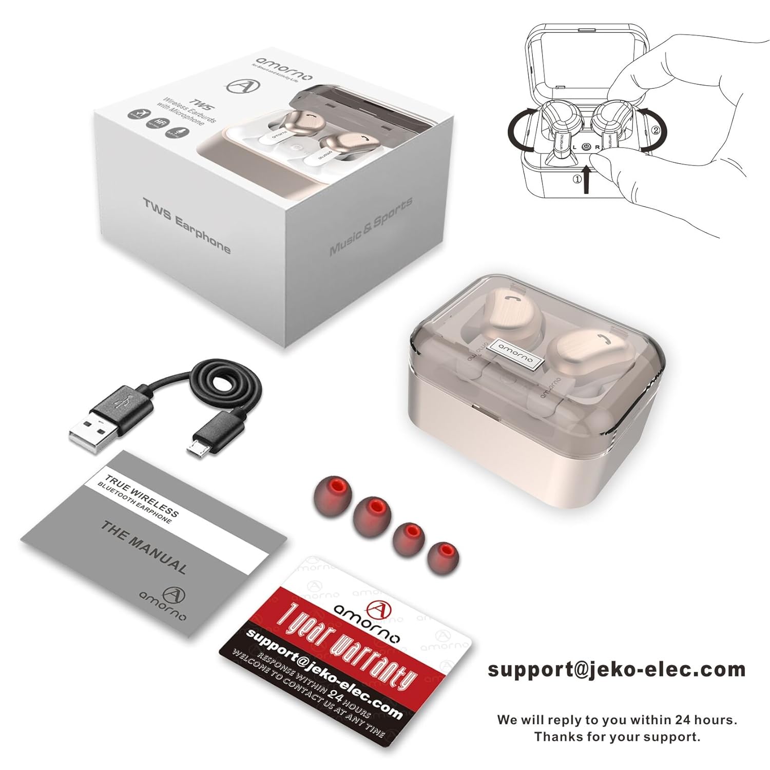 Wireless Earbuds, AMORNO True Bluetooth Headphones In-Ear Deep Bass Noise Cancelling Earphones Mini Sweatproof Sports Headsets with Charging Case Built-in Mic